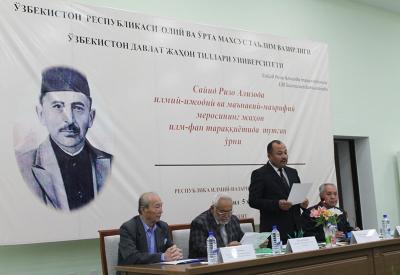 Академик Бахтияр Назаров в своем докладе сообщил о разносторонней деятельности ученого и просветителя и о том, что в период с 1918 по 1920 годы Сеид Рза Ализаде подготовил Алифба (Азбуку) узбекского, таджикского языка и азбуку, живущих в Средней Азии фарсов (иранцев), а также грамматику таджикского языка.