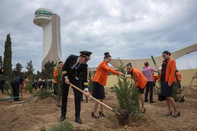 К акции посадки саженцев в Международном аэропорту Гейдар Алиев присоединились сотрудники всех подразделений AZAL, включая пилотов, бортпроводников, работников Управления авиационной безопасности и др.