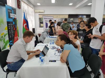 Представители вузов и информационного портала Russia.study рассказали гостям о своей работе по отбору иностранных абитуриентов в рамках квот государственных стипендий Правительства Российской Федерации, условиях обучения и проживания. Участниками представления стали юноши и девушки, изъявившие желание учиться в российских вузах по данной программе. На мероприятии также была представлена работа Азербайджанской ассоциации выпускников российских (советских) высших учебных заведений.