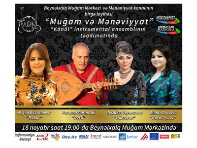 В Международном центре мугама в Баку 18 ноября в 19:00 состоится очередной концерт в рамках проекта "Muğam və mənəviyyat" ("Мугам и духовность"), сообщили в пресс-службе Центра.