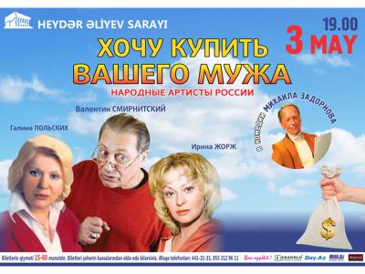 Во Дворце Гейдара Алиева в Баку в 19:00 3 мая покажут спектакль Московского театра "О'Кей" "Хочу купить вашего мужа" с участием известных российских актеров, сообщили в пресс-службе дворца.