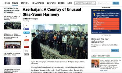 Американское издание Jewish Journal опубликовало статью главы общины горских евреев Азербайджана Милиха Евдаева под названием "Азербайджан- страна уникальной гармонии между шиизмом и суннизмом". В своей статье автор пишет, что с открытия мечети Гейдара, названного в честь общенационального лидера Азербайджана Гейдара Алиева, это место стало символом мира, толерантности и единства.