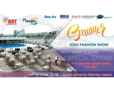 В Баку на берегу Каспийского моря в Mambo beach, 27 июня в 18.00, пройдет вечер летней детской моды Summer Kids Fashion Show, организованный Art production, сообщили организаторы проекта.