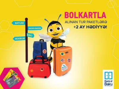 Как сообщили в банке, в рамках кампании, проводимой под лозунгом «+2 месяца в подарок к турпакетам, приобретенным с помощью Bolkart», обладатели Bolkart могут насладиться отдыхом этим летом, приобретая турпакеты на более приемлемых условиях.