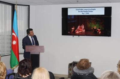 Stressing the importance attached by the Consulate General to making the Azerbaijani music more known in the U.S., the Consul General spoke of the successful U.S. premieres of Uzeyir Hajibeyli’s ‘Cloth Peddler’ operetta in Los Angeles in 2013 and Qara Qarayev’s ‘Seven Beauties’ ballet in San Diego in 2014 - to the audiences of thousands of American spectators. Then some fragments from these premieres were screened.