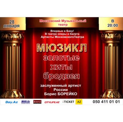 Московский музыкальный театр "Эксперимент" впервые представит в Баку на сцене Азербайджанского государственного академического театра оперы и балета мюзикл "Золотые хиты Бродвея" с участием заслуженного артиста России, лауреата международных конкурсов Бориса Борейко.
