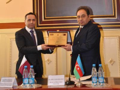 Приветствуя гостя, ректор, академик Абель Магеррамов проинформировал его о развитии науки и образования в БГУ, говорил об интеграции вуза с передовыми университетами мира, отношениях между Азербайджаном и Катаром, в том числе в области образования. Отметив встречи президента Ильхама Алиева и эмира Катара шейха Тамима бен Хамада аль Тани, ректор упомянул про подписанные многочисленные документы между нашими странами. Говоря о прошлогоднем визите в Доху министра Микаила Джаббарова, академик Абель Магеррамов отметил важность проведенного тогда обсуждения о сотрудничестве в сфере науки и образования.
