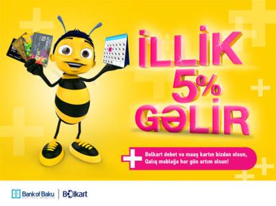 Как говорится в сообщении Bank of Baku, банк, добавив к дебетовым картам Bolkart и зарплатным картам новую функцию, позволит обладателям этих карт получать 5% ежегодную прибыль.