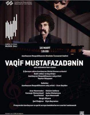 В Зале камерной и органной музыки Азербайджанской государственной филармонии имени Муслима Магомаева 16 марта состоится концерт, посвященный памяти заслуженного деятеля искусств Азербайджана, известного джазового композитора и пианиста Вагифа Мустафазаде.