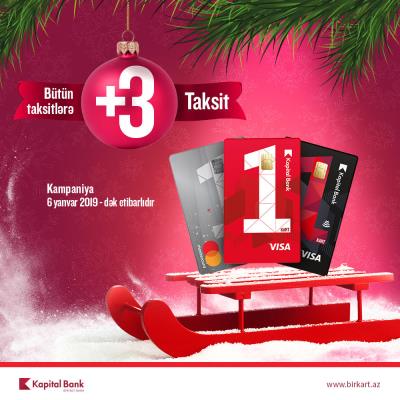 Kapital Bank Yeni il münasibətilə BirKart taksit kartı sahibləri üçün yeni kampaniya təqdim edir. Şərtlərə görə, BirKart-ın partnyor mağazalarında taksitli alış-veriş edən müştərilər əlavə olaraq 3 taksit əldə edəcəklər.