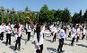 The official flame of the First European Games was welcomed to Gazakh by hundreds of local residents.