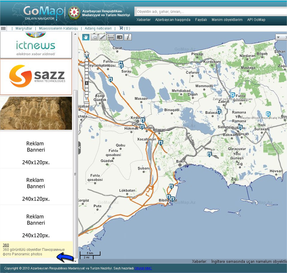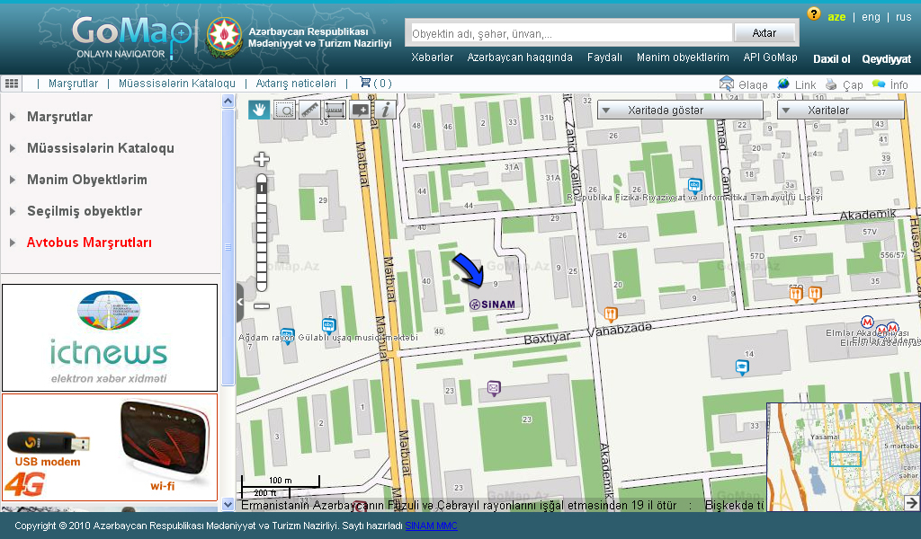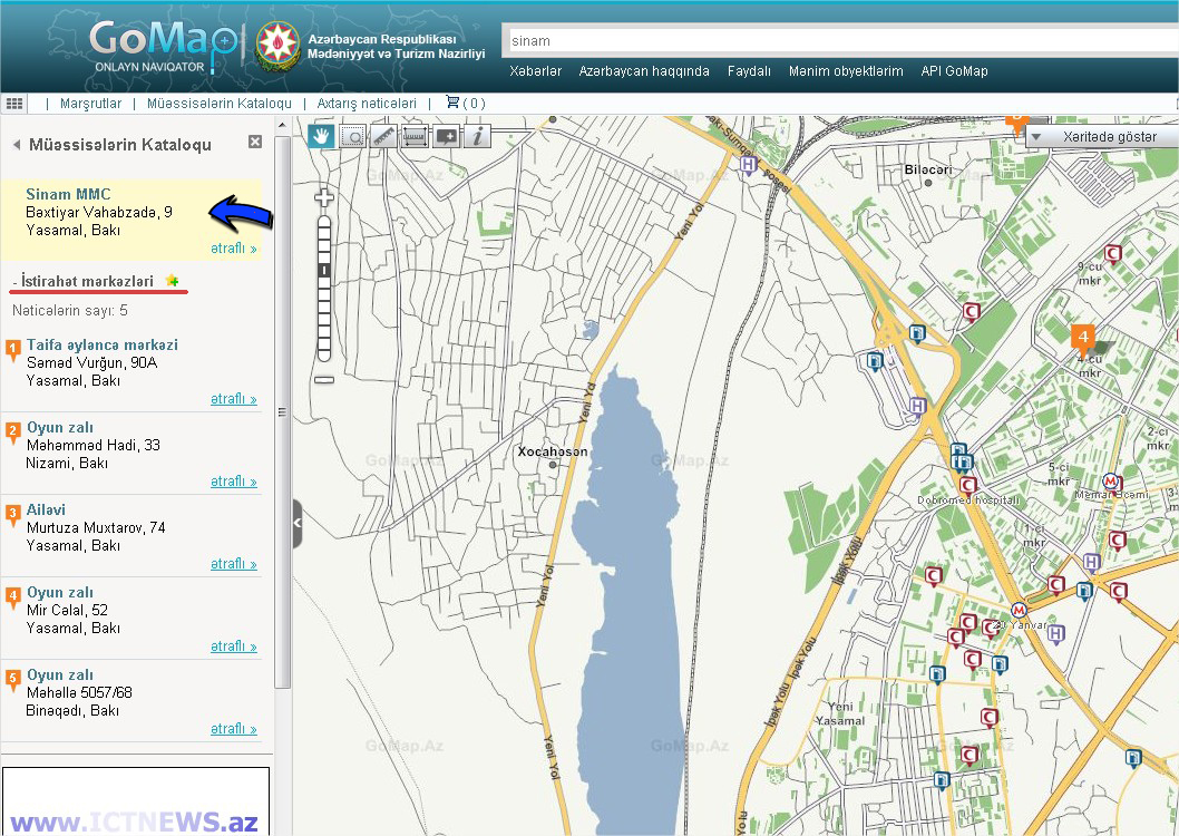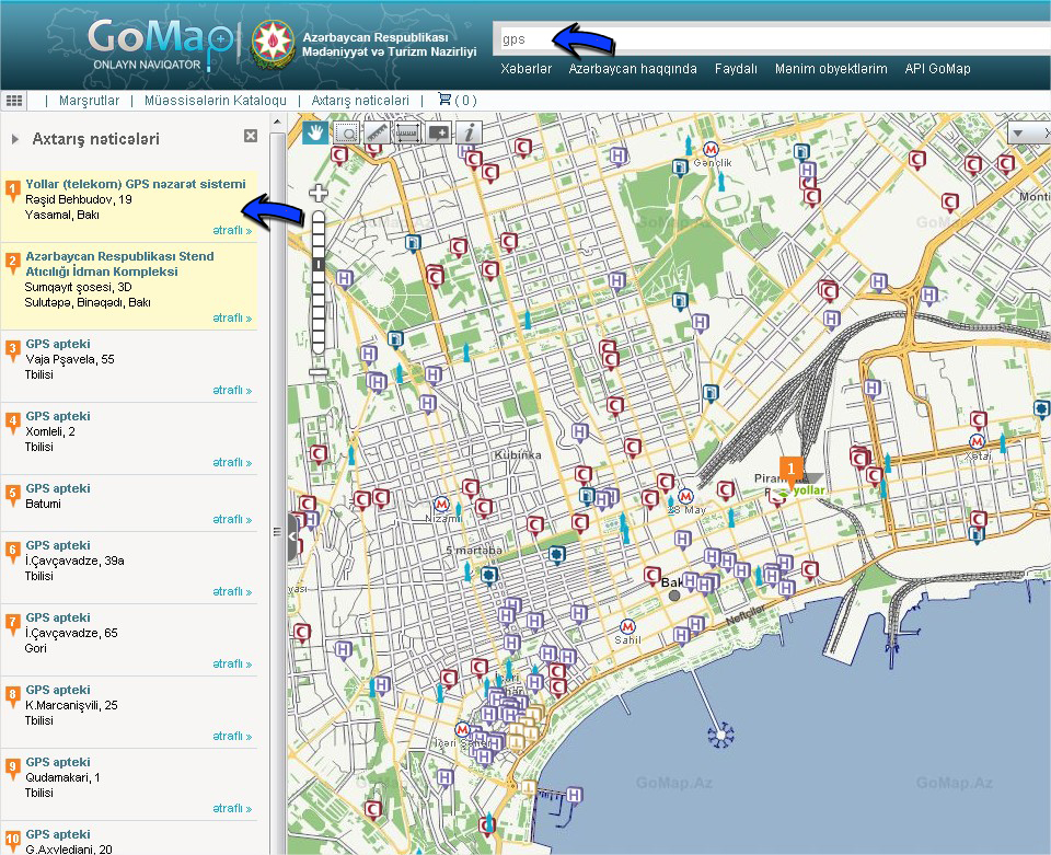 In case of choise of certain category (type) in catalog, in left menu advertised object is presented on the top of the list on a yellow background. (Regardless of whether the object is in the visible part of the map's browser window).