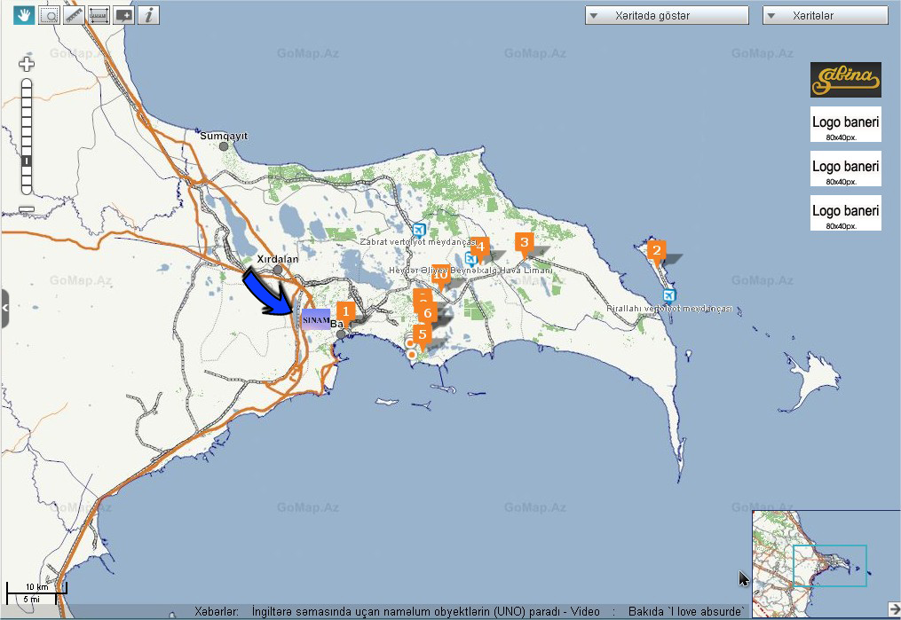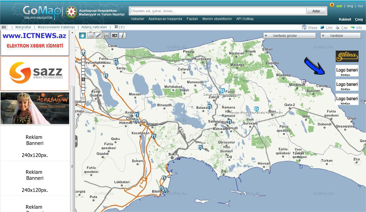 A special icon (or Logo) of the advertised object is presented at a certain distance of the zoom on the map.