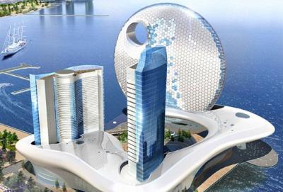 yerləşəcək və həmin binalar dəniz sahilində sürünən “ilan” formalı kürsü