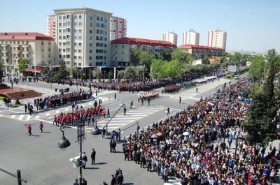 Məktəblilərin paradı ulu öndər Heydər Əliyevin əzəmətli abidəsi önündən keçərək şəhərin küçələri boyunca müxtəlif istiqamətlərdə hərəkət etmiş sumqayıtlılara bir daha  bayram təntənəsinin sevincini yaşamağa imkan verib.