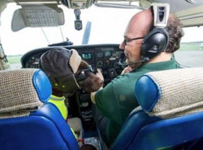 Kelli Kornuel, Uels və Şotlandiyanın ən ucqar aeroportlarında havaya qalxıb və yerə enib. İtin öz şlemi və xüsusi kəməri var.