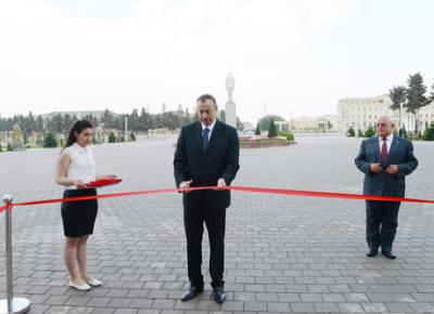 Dövlət başçısı Heydər Əliyev Mərkəzinin rəmzi açılışını bildirən lenti kəsib.