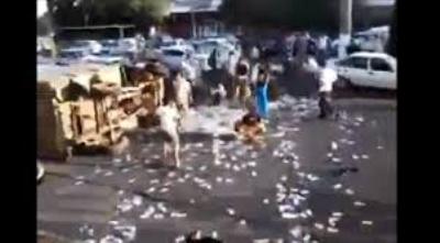 Yoldan keçən sürücülər və piyadalar küçəyə səpələnən əskinasları toplamağa başlayıblar. Hüquq-mühafizə orqanları qəza zamanı səpələnən pullardan oğurluq olmadığını bildirir.