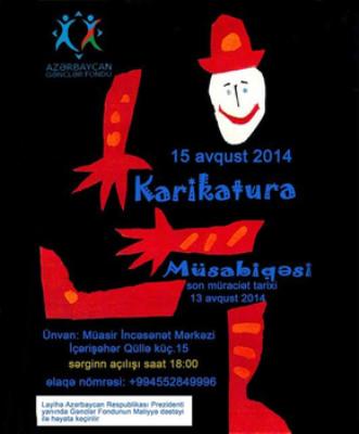 Avqustun 15-də Müasir İncəsənət Mərkəzinin sərgi salonunda “Karikatura müsabiqəsi” layihəsinin yekun sərgisi keçiriləcək. Layihə Azərbaycan Respublikası Prezidenti yanında Gənclər Fondunun elan etdiyi 5-ci qrant müsabiqəsində qalib gəlib.