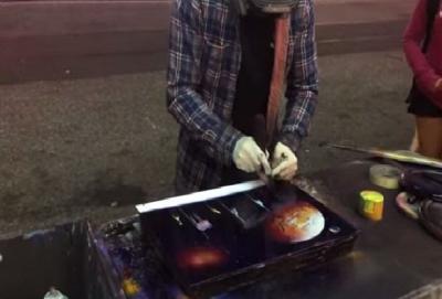 Aerozol vasitəsi ilə beş dəqiqəyə bir rəsm əsəri çəkən gənc yoldan keçən insanları heyrətləndirib.