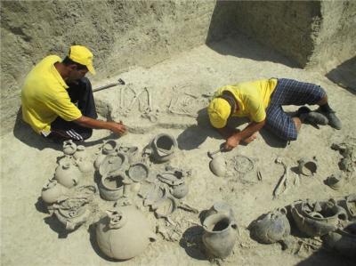 Belə ki, tədqiq edilən qəbirlərin birində bükülü vəziyyətdə qoyulmuş
