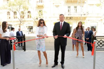 Dövlətimizin başçısı və xanımı məktəbin binasının rəmzi açılışını bildirən lenti kəsdilər. Təhsil naziri Mikayıl Cabbarov məktəbdə görülən əsaslı yenidənqurma işləri ilə bağlı Prezident İlham Əliyevə məlumat verdi.