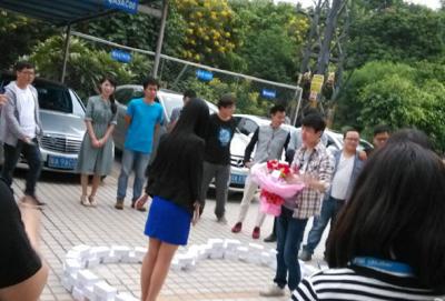 Qız bu romantik etirafa etiraz edib, amma bu eşq etirafından hazırlanan fotoreportaj Weibo sosial şəbəkəsində dərc edilib.