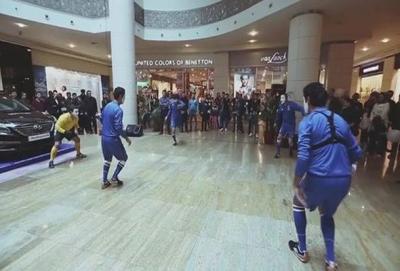 Üzlərinə xüsusi boya çəkmiş altı Azərbaycan Dövlət Pantomim Teatrının aktyorları paytaxt küçələrində və Park Bulvar TM-də futbol tamaşası nümayiş etdiriblər.