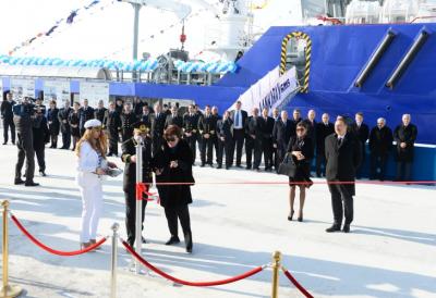 Prezident İlham Əliyev “Müslüm Maqomayev” və “Lənkəran” gəmilərinin istismara verilməsi mərasimində iştirak edib - FOTOLAR