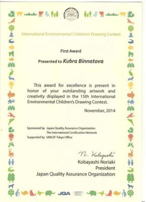 Təhsil Nazirliyinin Nizami rayon Uşaq-Gənclər Yaradıcılıq Mərkəzinin yetirməsi Kübra Binnətovanın rəsm işi Yaponiyada keçirilmiş 15-ci Beynəlxalq Ekoloji Uşaq Rəsm Müsabiqəsində I yerə layiq görülüb.