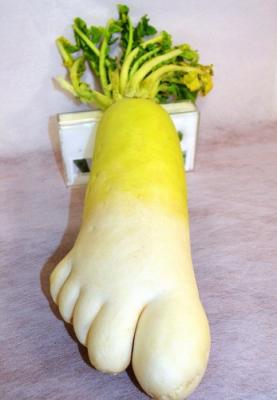 Yaponiyalı əkinçinin bostanında qeyri-adi formada turp yetişib. Yukihiro İkeuchinin əkin sahəsində yetişən ayaq formalı turp görənlərin böyük təəccübünə səbəb olub.