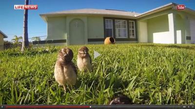 Videonun müəllifi bayquşları evin həyətində lentə alıb.