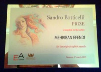 Tanınmış azərbaycanlı rəssam Mehriban Əfəndinin “Gecənin mistikası” adlı əsəri “Effetto Arte” jurnalının 2015- ci ilin yanvar nüsxəsində “Sandro Botiçelli” adına mükafatın laureatı kimi onun haqqında informasiya ilə nəşr edilib.