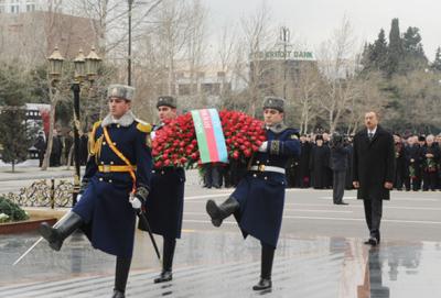 Prezident abidənin önünə əklil qoyub, faciə qurbanlarının xatirəsinə ehtiramını bildirib.
