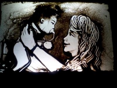 Biləsuvarda qum üzərində rəsm sərgisi açılıb
