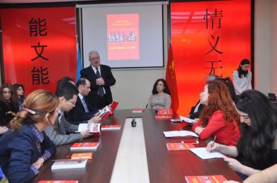 ADU-dan bildiriblər ki, tədbirdə mərkəzin müdiri, professor Rafiq Abbasov çin dilinin öyrənilməsində, Çinin müasir siyasəti, iqtisadiyyatı, tarix və mədəniyyətinin təbliğində mərkəz tərəfindən görülən işlər barədə məlumat verib. O, mərkəz tərəfindən mütəmadi olaraq ümummilli lider Heydər Əliyevin siyasi irsinin öyrənilməsinə və Prezident İlham Əliyevin Azərbaycan-Çin münasibətlərinin çoxtərəfli inkişafındakı fəaliyyətinə həsr olunan elmi seminarların keçirildiyini qeyd edib.
