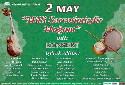 Mayın-2 də Heydər Əliyev Sarayında “Milli Sərvətimizdir Muğam” adlı konsert proqramı keçiriləcək.