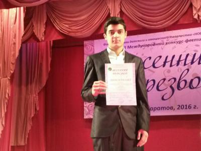 Bakı Şəhər Mədəniyyət və Turizm İdarəsinin şəbəkəsinə daxil olan G.Şaroyev adına 35 nömrəli Onbirillik musiqi məktəbin X sinif şagirdi Elyar Əliyev Rusiyanın Saratov şəhərində "YENİ NƏSİL" Uşaq və gənclərin yaradıcılığına dəstək Fondunun keçirdiyi VI Beynəlxalq müsabiqə-festivalında iştirak edib.