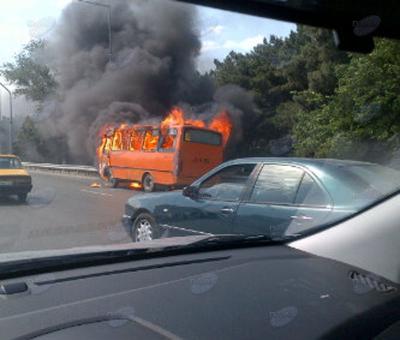 Bakıda avtobus yanıb kül oldu. Hadisə yerində olan şahidlərdən biri məlumat verərək bildirib ki, yanğın Sumqayıtdan Bakı istiqamətinə gələrkən Bakı Beynəlxalq Avtovağzalına 100 metr qalmış baş verib.