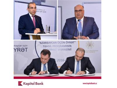 Bankdan verilən məlumata görə, Kapital Bank "Azərbaycan üçün öyrət" ("Teach for Azerbaijan") beynəlxalq təhsil proqramının rəsmi tərəfdaşı oldu. Bununla bağlı təşkil edilən təqdimat mərasimində Təhsil Nazirliyi və Kapital Bank arasında əməkdaşlıq memorandumu imzalanıb.