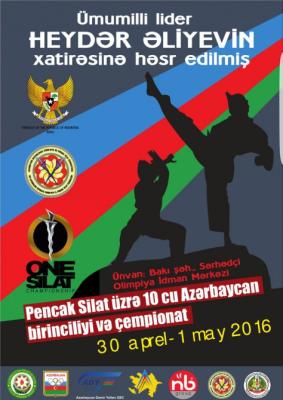 Ümummilli lider Heydər Əliyevin anadan olmasının 93-cü ildönümü münasibətilə aprelin 30-dan mayın 1-dək Bakıda sindo-ryu və pençak-silat üzrə X Azərbaycan birinciliyi və çempionatı keçiriləcək.