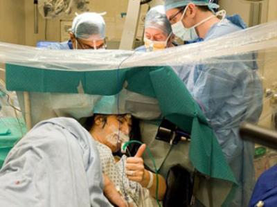 Cərrahlar qadının beynindəki şişi anesteziyasız kəsib götürdülər.