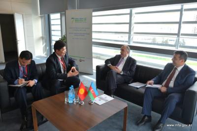 Xarici işlər naziri Elmar Məmmədyarov BMT Sivilizasiyalar Alyansının Bakıda keçirilən VII Qlobal Forumu çərçivəsində Qırğızıstanın mədəniyyət, informasiya və turizm naziri Altınbek Maksutov ilə görüşüb.