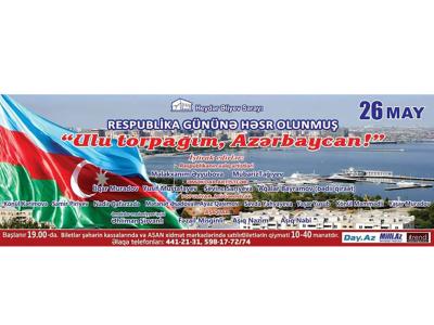 Mayın 26-da Heydər Əliyev Sarayında Respublika Gününə həsr olunmuş "Ulu torpağım, Azərbaycan!" konsert proqramı keçiriləcək.