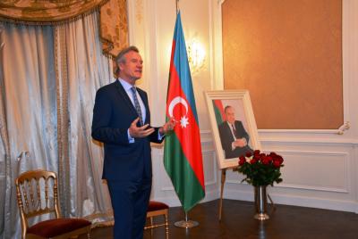 Fransadakı səfirimiz Elçin Əmirbəyov tədbir iştirakçılarına ulu öndər Heydər Əliyevin həyat və fəaliyyəti haqqında məlumat verib. O, Ulu Öndərin hakimiyyətə gəldikdən sonra Dağlıq Qarabağ münaqişəsinin həlli istiqamətində səylə çalışdığını və 1994-cü ildə atəşkəs imzalandığını vurğulayıb. Qeyd edib ki, Heydər Əliyev Azərbaycanın ərazi bütövlüyü və suverenliyi çərçivəsində Dağlıq Qarabağ münaqişəsinin sülh yolu ilə həllinə üstünlük verib, azərbaycanlı qaçqın və məcburi köçkünlərin doğma yurdlarına qayıtması üçün yorulmadan çalışıb. Diplomat bildirib ki, BMT Təhlükəsizlik Şurasının 4 qətnaməsinə baxmayaraq Ermənistan Azərbaycan torpaqlarını hələ də işğal altında saxlamaqda davam edir və müntəzəm şəkildə atəşkəs rejimini pozur. Azərbaycan Ordusu torpaqlarımızı azad etməyə qadirdir, ancaq Heydər Əliyevin sülh mövqeyinə sadiq qalaraq Azərbaycan hökuməti Dağlıq Qarabağ münaqişəsini beynəlxalq hüququn norma və prinsiplərinə uyğun olaraq danışıqlar yolu ilə həllinə üstünlük verir.