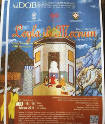 Dahi Azərbaycan bəstəkarı Üzeyir bəy Hacıbəylinin "Leyli və Məcnun" operası Ankara Dövlət Opera və Balet Teatrında nümayiş etdiriləcək.
