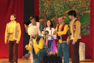Tamaşaya teatrın bədii rəhbəri, əməkdar artist Vidadi Həsənov quruluş verilib. Gənc aktyorlar - Günay Əhməd, Amid Qasımov, Oqtay Mehdiyev, Vüqar Hacıyev, Ziya Ağa və Elgün Həmidovun oynadığı tamaşada milli və dünya musiqisi nümunələrindən istifadə edilib.