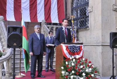 Tədbirdə çıxış edən ABŞ-ın Azərbaycandakı səfirliyinin müvəqqəti işlər vəkili Adam Sterlinq ölkəsinin müstəqillik tarixindən danışıb. O, qeyd edib ki, 4 iyul 1776-cı il ABŞ-ın müstəqilliyə nail olduğu tarix deyil, “Müstəqillik Bəyannaməsi”nin yazıldığı gündür.