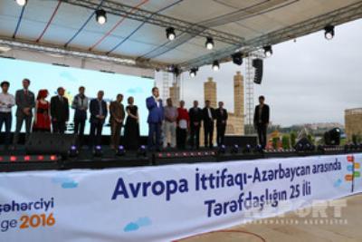 Heydər Əliyev parkındakı Amfiteatrda keçirilən tədbirdə ilk olaraq Aİ və Azərbaycanın himnləri səsləndirilib.