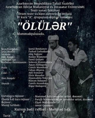 Azərbaycan Dövlət Mədəniyyət və İncəsənət Universitetinin Teatr sənəti fakultəsi - Dram teatr və kino aktyorluğu ixtisası IV kurs tələbələri Cəlil Məmmədquluzadənin "Ölülər" tragikomediyasını hazırlayıb.
